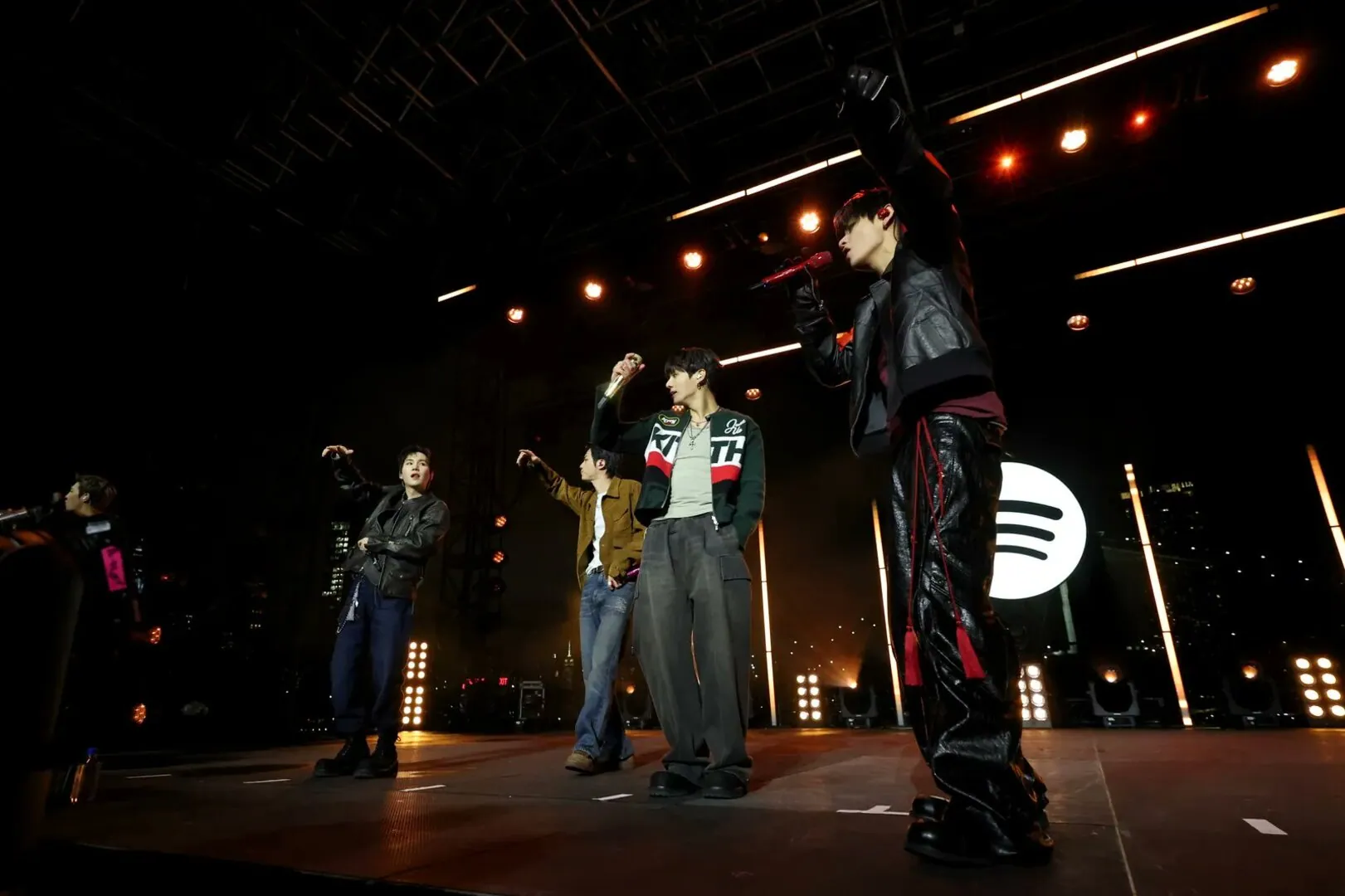 Their run in America began with the intimate Spotify x BTS: SWIMSIDE fan event, which drew out some 1000 fans who were invited to watch their favourite idols on stage up close and personal. Having happened on 23 March at Pier 17 in New York City, the event began with the group having a question and answer session with none other than singer and actress Suki Waterhouse, as they reflected on their journey as musicians and the release of ARIRANG.