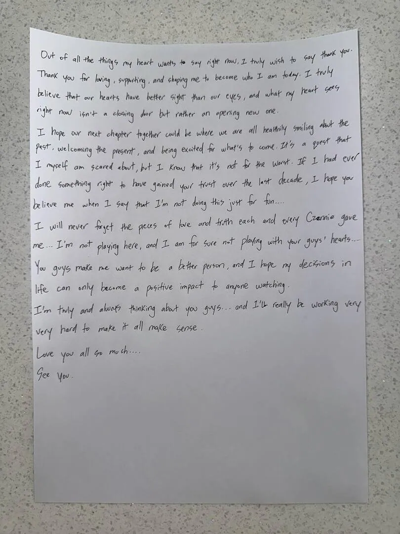 In a heartfelt handwritten letter shared with fans, the artist reflected on his journey, “I think I’ve truly, truly been nothing but happy.”