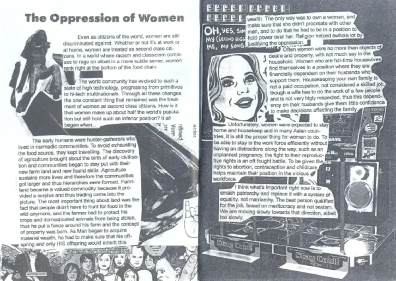 During her time in Psycho Sonique, Ginette embraced the culture of Riot Grrrl and created CherryBomb Press, which was their very own feminist zine. Each zine channeled the DIY mindset driven by the Riot Grrrl movement as she employed collage-like and cut-and-paste styles in creating each piece.
