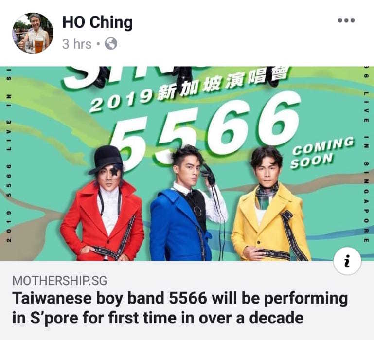 这则消息一释出,相信不少歌迷都兴奋了起来,56多首经典歌曲在脑海中快速播放。连新加坡总理夫人何晶都认同“56不能亡”,在自己的Facebook上分享56确定来新的消息!