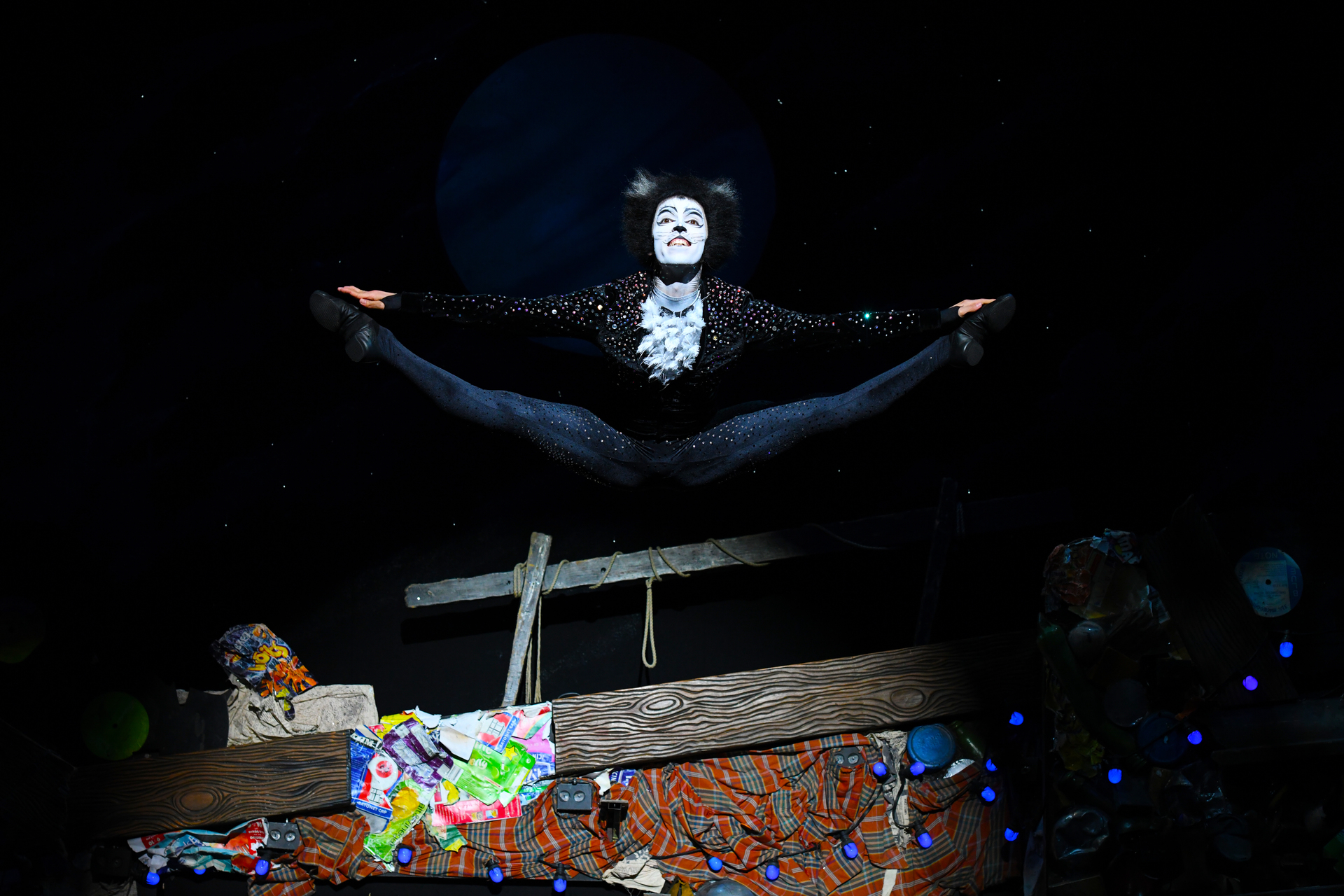 从剧中的最开始,舞台上的灯光一盏盏亮起,从台上到剧场的墙上,甚至剧场的天花板上,台下的观众已是感到惊喜。在黑暗中,各种造型的“猫”从观众群中冒出,纷纷跑到舞台上,开始了这场十分精彩的歌舞剧。