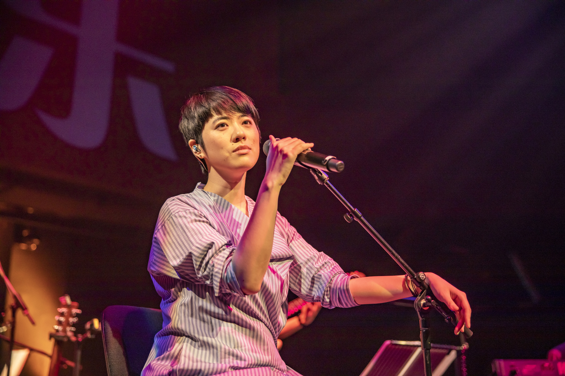 在自己的表演中,她的歌声更是有感染力。现场场地虽小,也没有座椅,但这让粉丝们更能够贴近舞台,感受这场演出的气氛。无需太多的场地设计,岑宁儿携着乐队,静静地唱着歌,带领大家一同走进她的音乐世界。