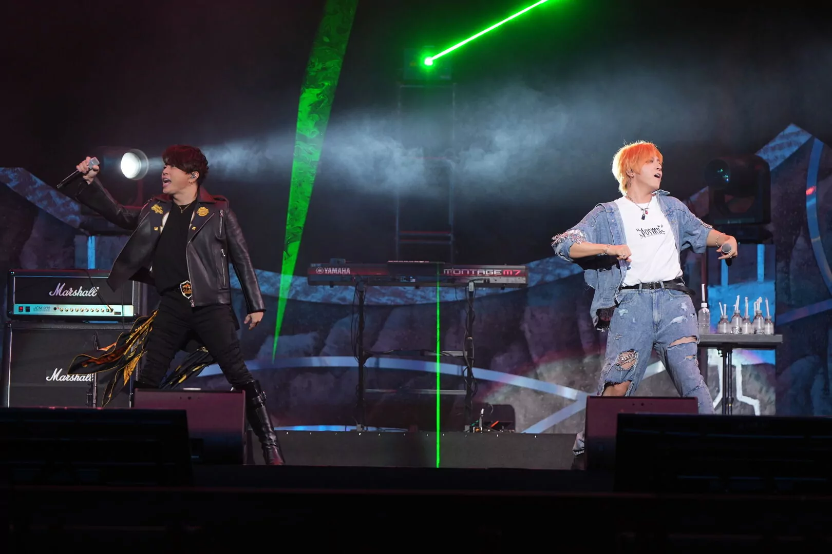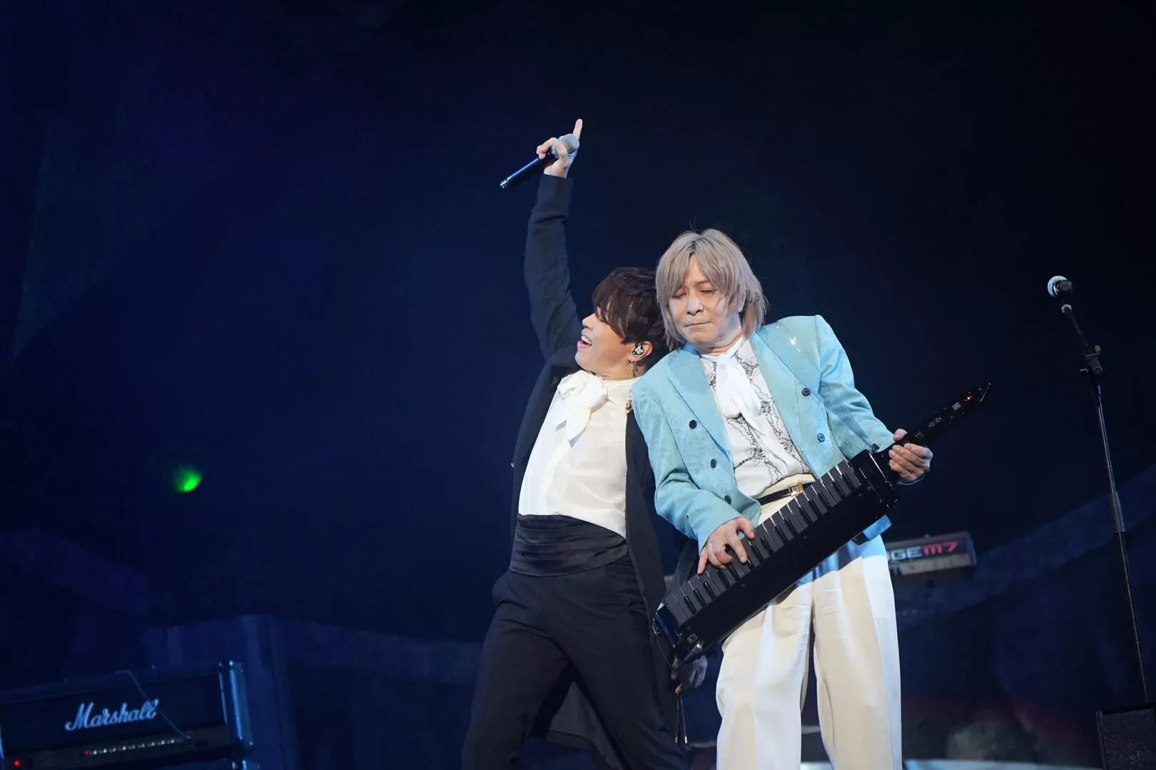 As ReoNa's set ended, a countdown suddenly began, raising the anticipation in the venue. Tetsuya Komuro then made a dynamic entrance. Showcasing his skills by playing a synthesizer solo, he transitioned into the famous track 'Get Wild'. Midway through the intro, Takanori Nishikawa reappeared on stage. Komuro, sporting a shoulder keyboard, moved freely around the stage, enchanting the audience alongside Nishikawa. Before the second song, Nishikawa raised anticipation by excitingly asking in Mandarin, "Have you seen the movie?!" He then passionately performed 'FREEDOM', the theme song for Mobile Suit Gundam SEED FREEDOM, marking the first collaboration between Komuro and Nishikawa. This special moment was made even more memorable by its debut in Shanghai, home to a life-size Freedom Gundam statue.