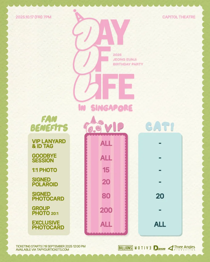 Jeong Eunji is making her way back to Singapore — and this time, it’s for a heartfelt celebration with fans. As part of her Asia tour, the 2025 JEONG EUNJI BIRTHDAY PARTY [A Day Of Life] will take place on 17 October at the Capitol Theatre, promising a night filled with music, memories, and exclusive fan moments.