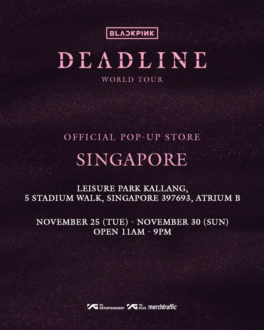 One of the biggest parts of preparing for a concert is deciding what to wear and getting a lightstick to make the experience even more memorable. Don't fret, BLACKPINK's got BLINKs covered with the BLACKPINK WORLD TOUR <DEADLINE> POP-UP STORE IN SINGAPORE that’s set to be held at Leisure Mall Kallang from 25 to 30 November from 11 AM to 9 PM.