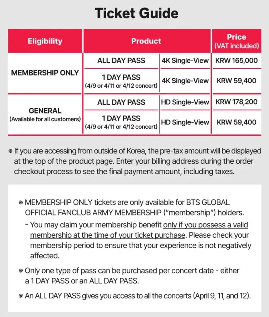 Tickets are available via BTS’ official Weverse community