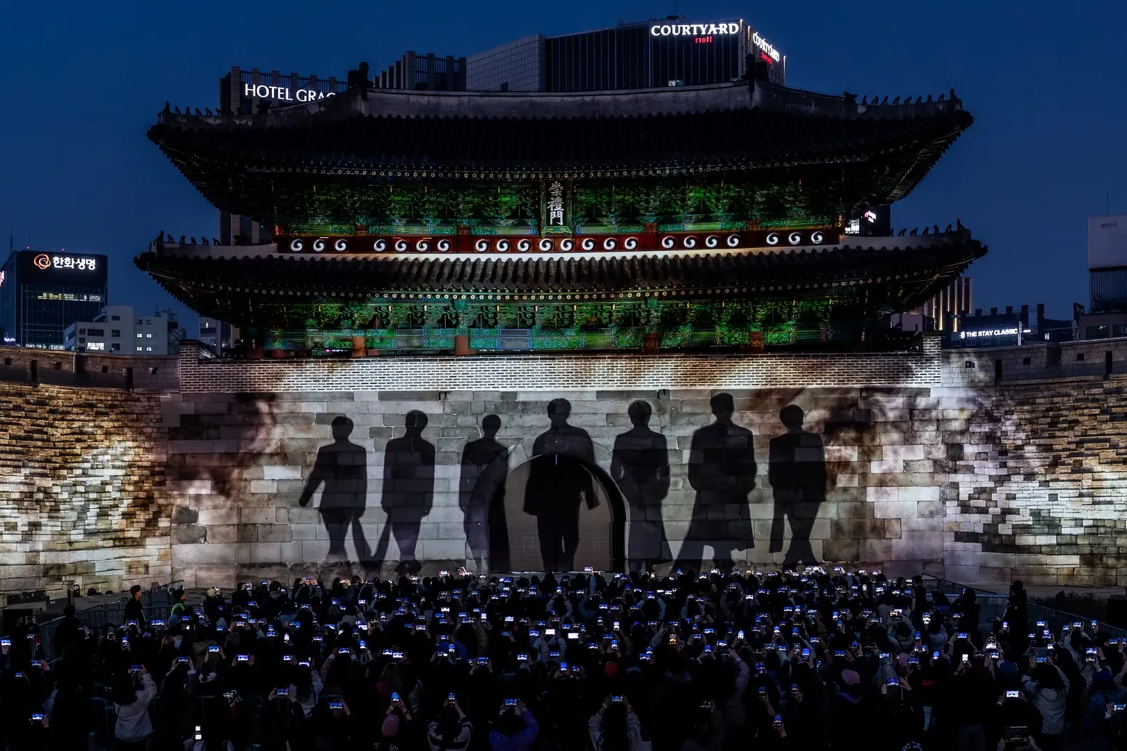 At the heart of Seoul’s transformation is Sungnyemun, which has been lit up through a striking media façade that fuses heritage with cutting-edge visuals. Other landmarks, including N Seoul Tower, have also been activated, turning familiar city sights into BTS-powered moments.