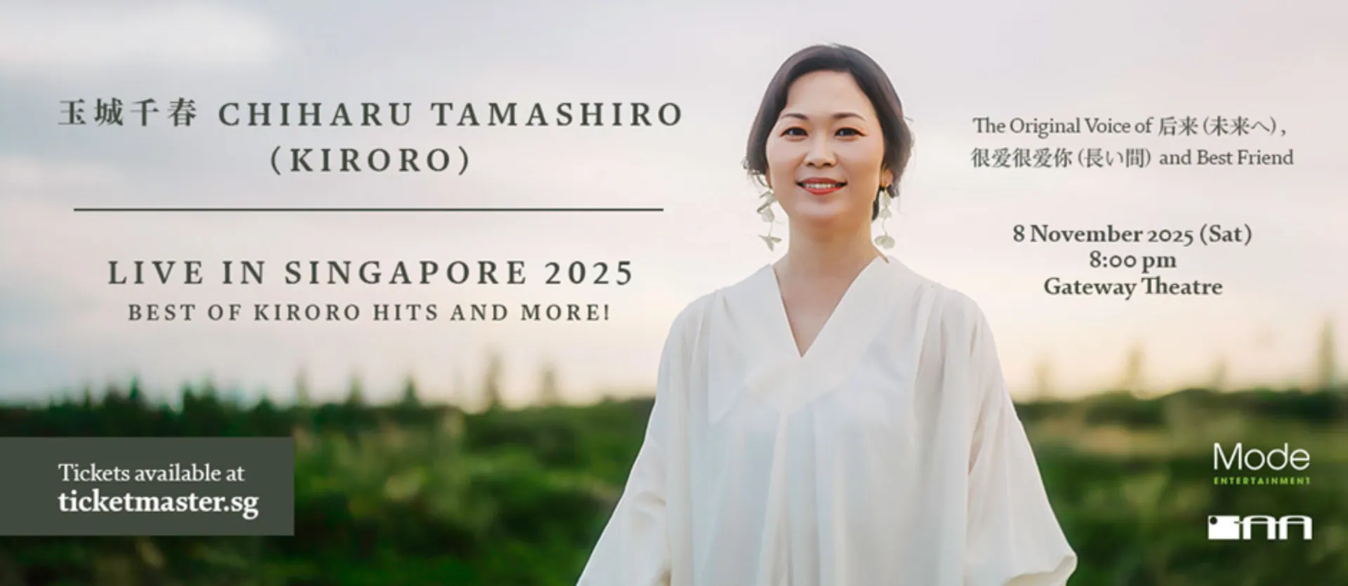 Fans of heartfelt J-pop and classic Mandopop are in for a treat — Chiharu Tamashiro, the beloved vocalist of acclaimed Japanese duo Kiroro, will be performing in Singapore for the very first time on 8 November at Gateway Theatre.