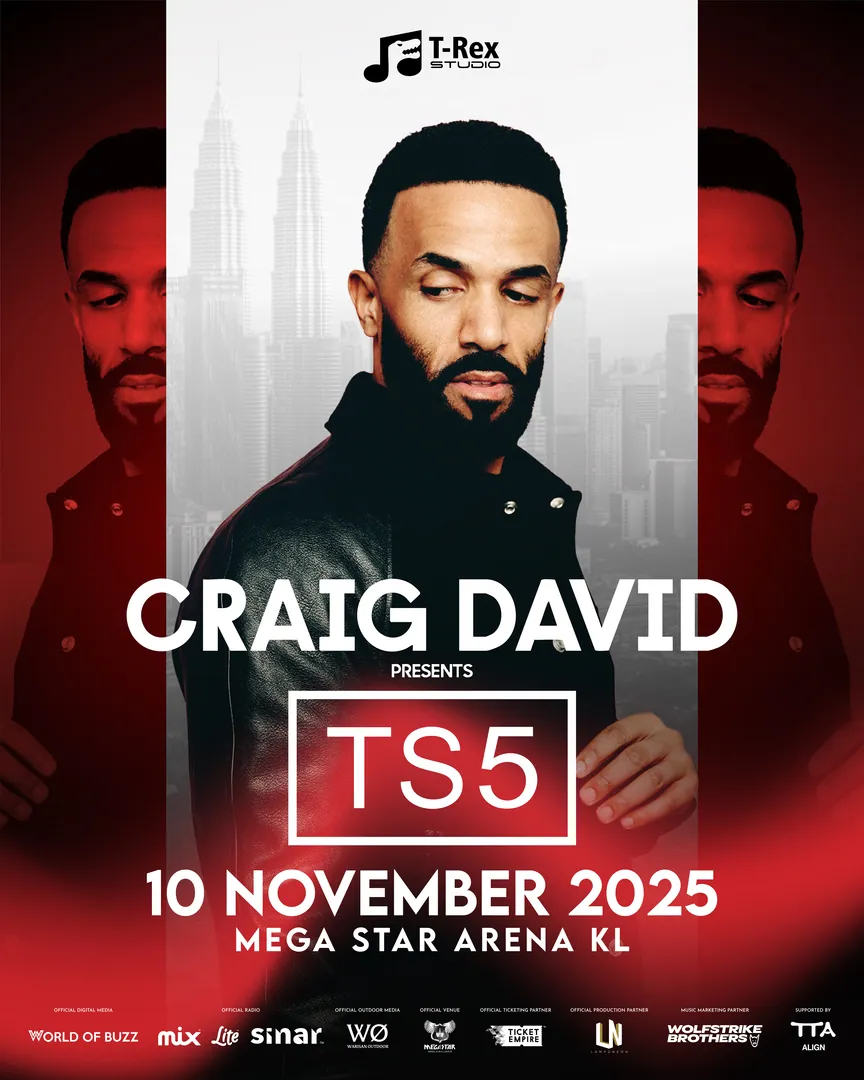 Craig David is making his long-awaited return to Malaysia with his first-ever TS5 show in Kuala Lumpur on 10 November at Mega Star Arena. Marking his only stop in Asia for his ongoing international tour, Craig David Presents TS5: Live in Kuala Lumpur promises an unforgettable night of high-energy beats, smooth R&B, and genre-blending grooves.