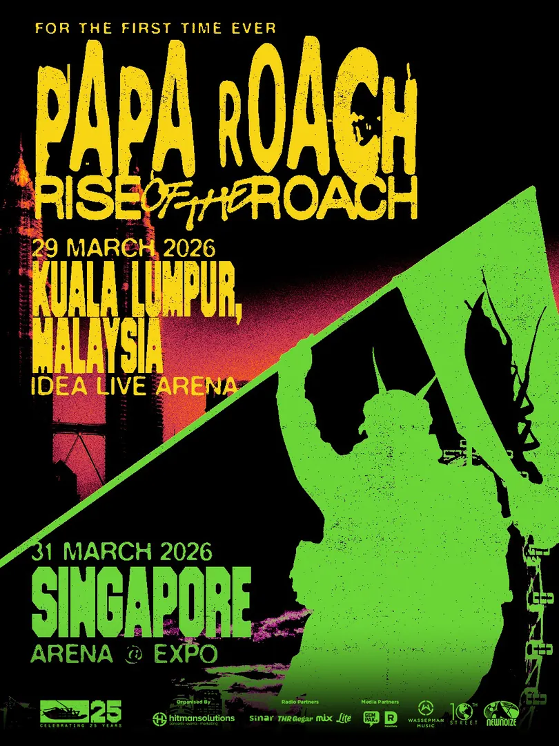 For the first time ever, Papa Roach are bringing their signature high-energy rock show to Southeast Asia. As part of their Rise of the Roach 2026 World Tour, the legendary American rock band will make stops in Kuala Lumpur on 29 March and Singapore on 31 March, marking a long-awaited milestone for fans in the region.