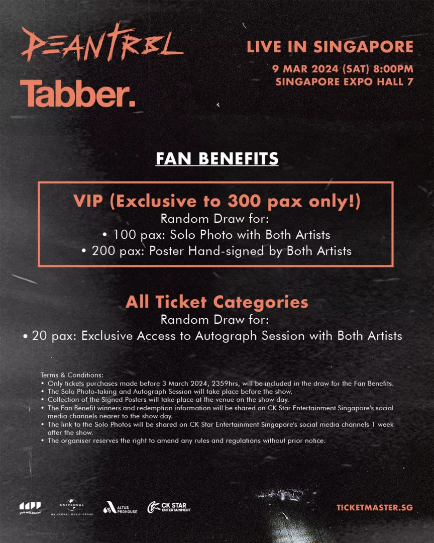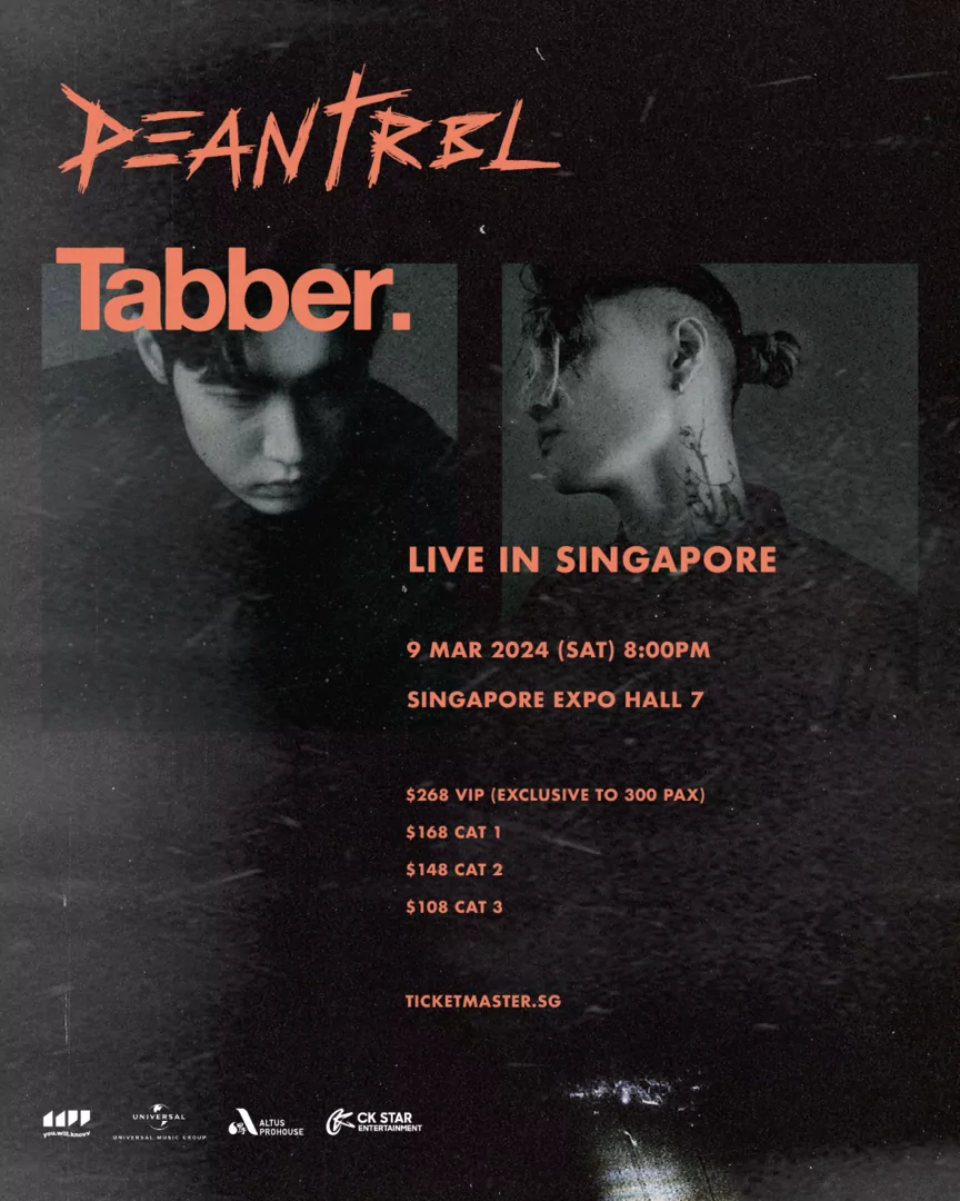 DEAN and Tabber will be performing at Dewan Merdeka, World Trade Centre, Kuala Lumpur on 10 March 2024. Tickets, starting at MYR 228, go on sale on 26 January, 10 AM MYT via Jiotix.