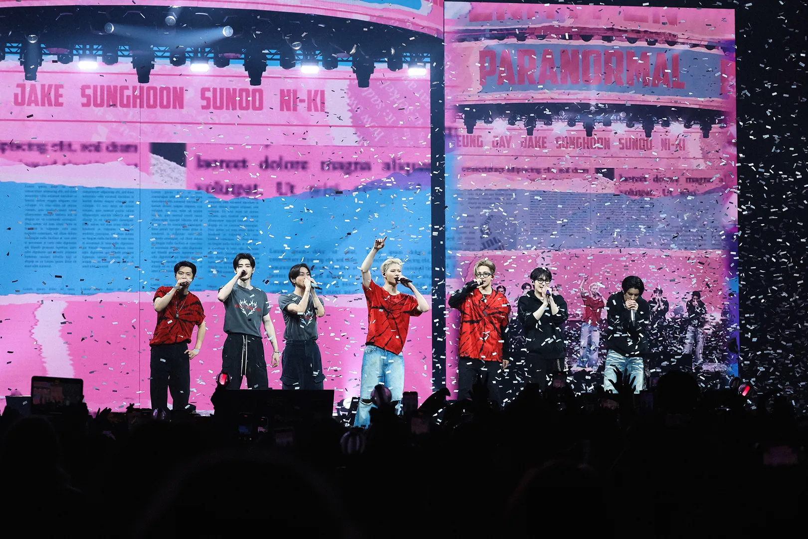 From the fiery opener ‘Brought The Heat Back’ to the sultry ‘XO (Only If You Say Yes)’, ENHYPEN kept fans on their feet with a blend of debut-era favourites like ‘Given-Taken’ and fan anthems including ‘Fever’, ‘Future Perfect (Pass the MIC)’, ‘Blessed-Cursed’, and the crowd-roaring ‘Go Big or Go Home’. Newer tracks ‘Loose’, ‘Fatal Trouble’, and ‘Moonstruck’ showcased their evolving sound, while unit stages — JAY, JAKE, and SUNGHOON’s intense ‘Lucifer’, and JUNGWON, HEESEUNG, SUNOO, and NI-KI’s explosive ‘Teeth’ — added emotional punch.