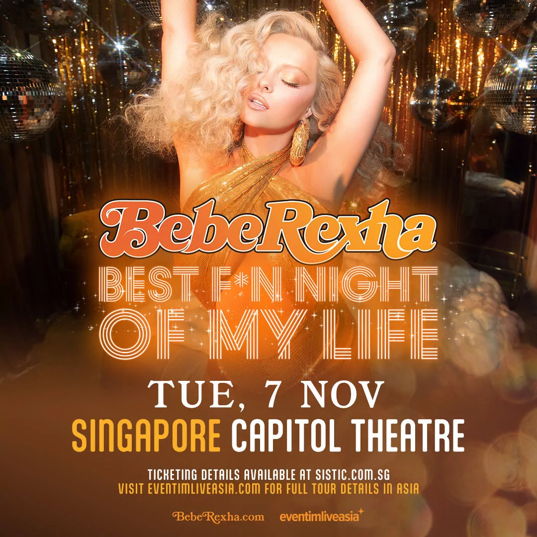 Bebe Rexha is taking the BEST F*N NIGHT OF MY LIFE Tour to Asia. The Singapore stop is one of six shows in the region, with the American pop singer-songwriter wrapping up the tour at the Capitol Theatre. The tour comes in support of her third studio album titled Bebe, which features 'Heart Wants What It Wants' and 'Call On Me'.