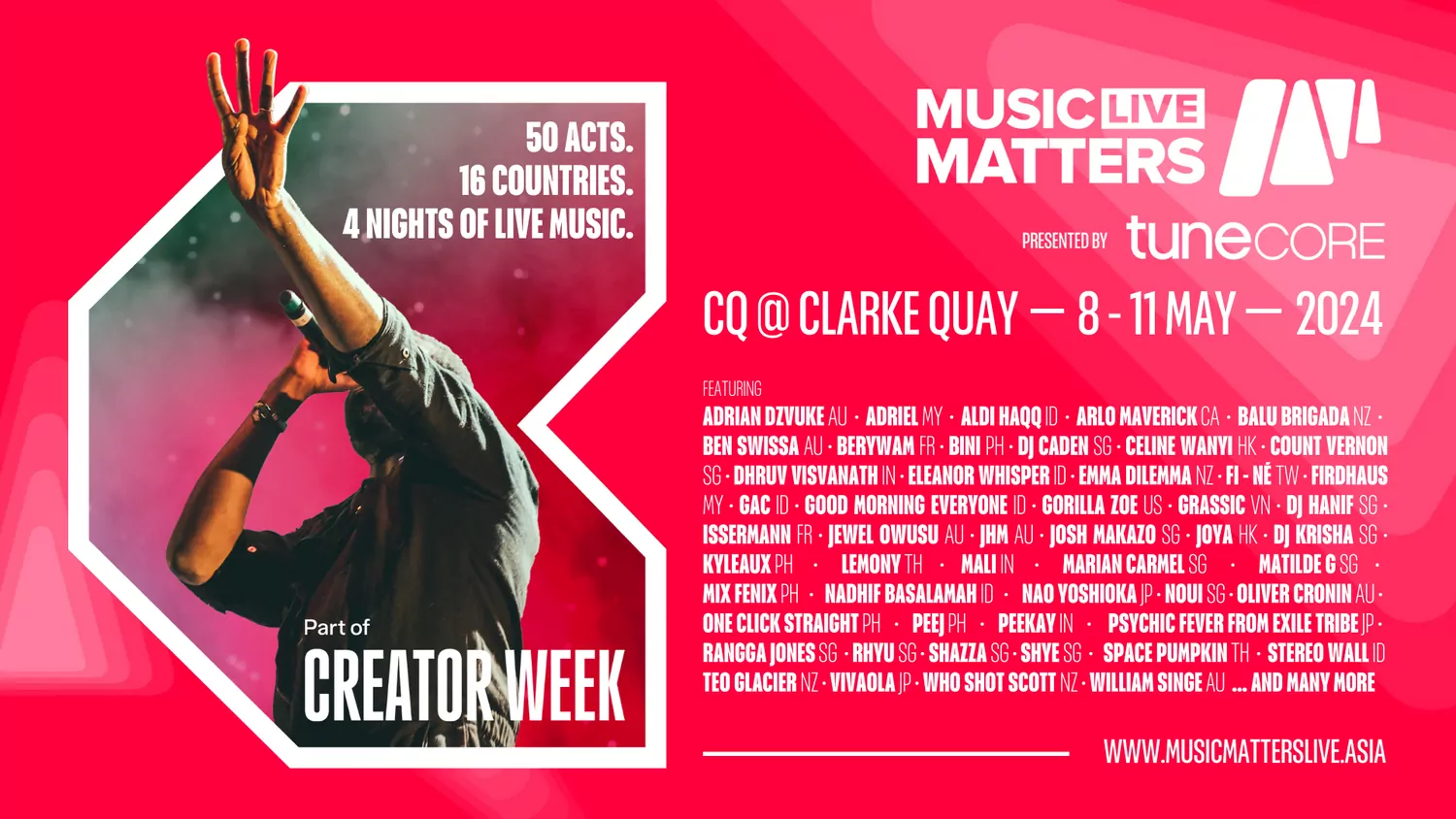 The highly anticipated festival is slated to run from 8 to 11 May, as part of CreatorWeek 2024. This year, Music Matters Live 2024 features an impressive lineup of more than 50 budding musicians from 16 countries, across four nights of music and seven venues.
