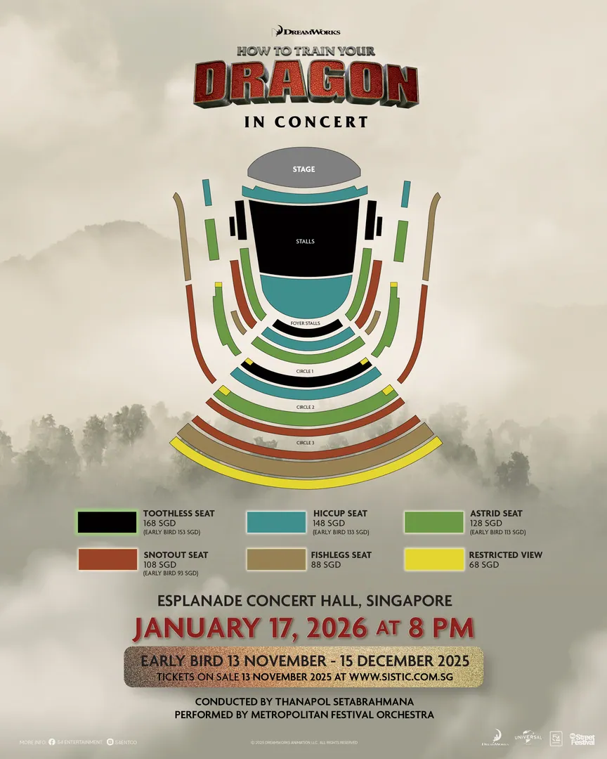 Put on your armor and get ready for a thrilling adventure that will make you feel like you're in the clouds alongside Hiccup and Toothless as How to Train Your Dragon In Concert lands in Singapore at Esplanade Concert Hall on 18 January.