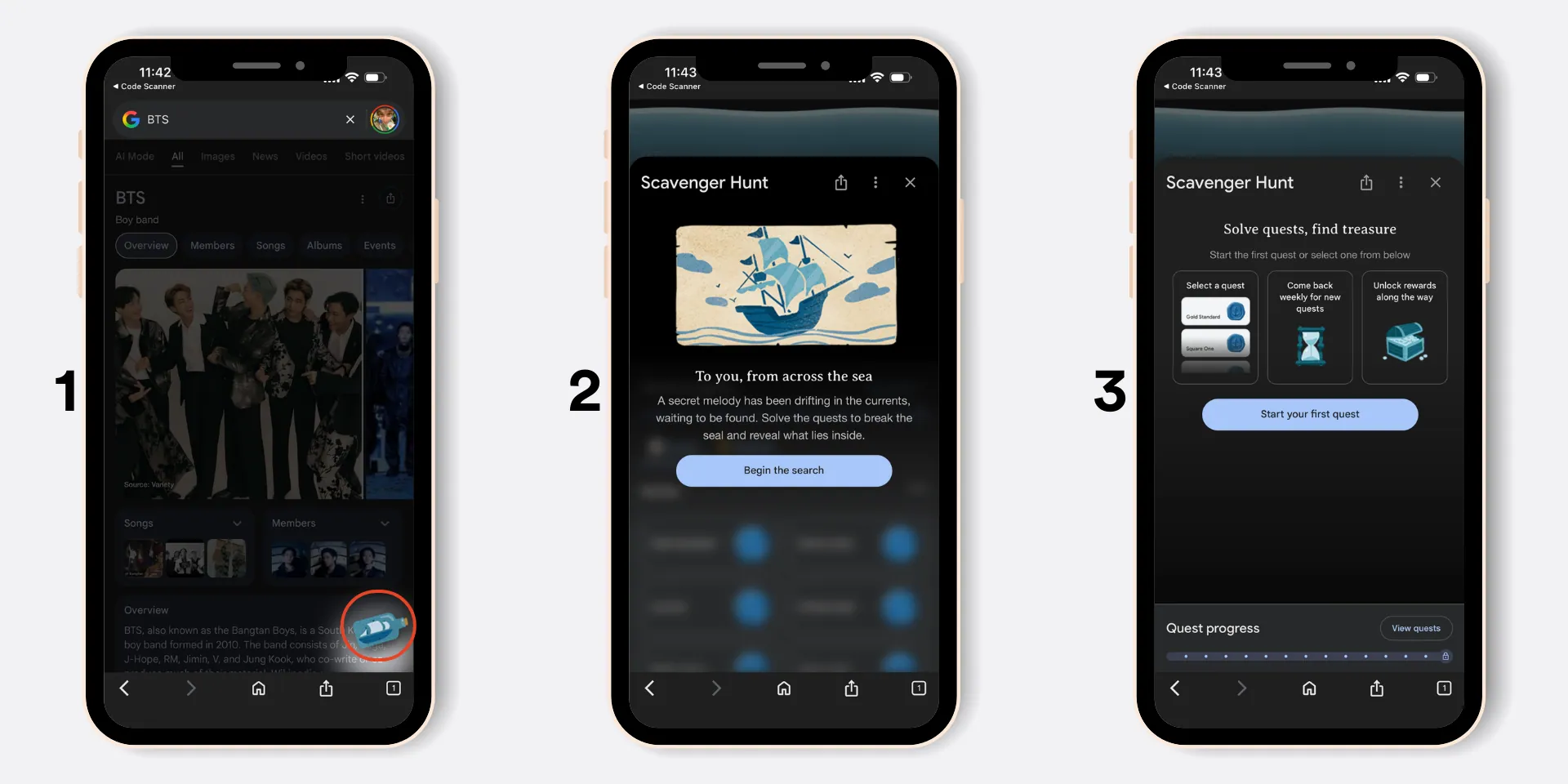 Begin your quest by searching BTS on Google and click on the tiny nautical inspired icon that pops up on the bottom right corner of your screen. From there continue the quest by answering questions relating to the musical journey of your favourite idols, and unlock exclusive digital memorabilia. On 9 and 16 March, ARMYs can also unlock new “sealed” quests, adding more fun as the album release draws near.