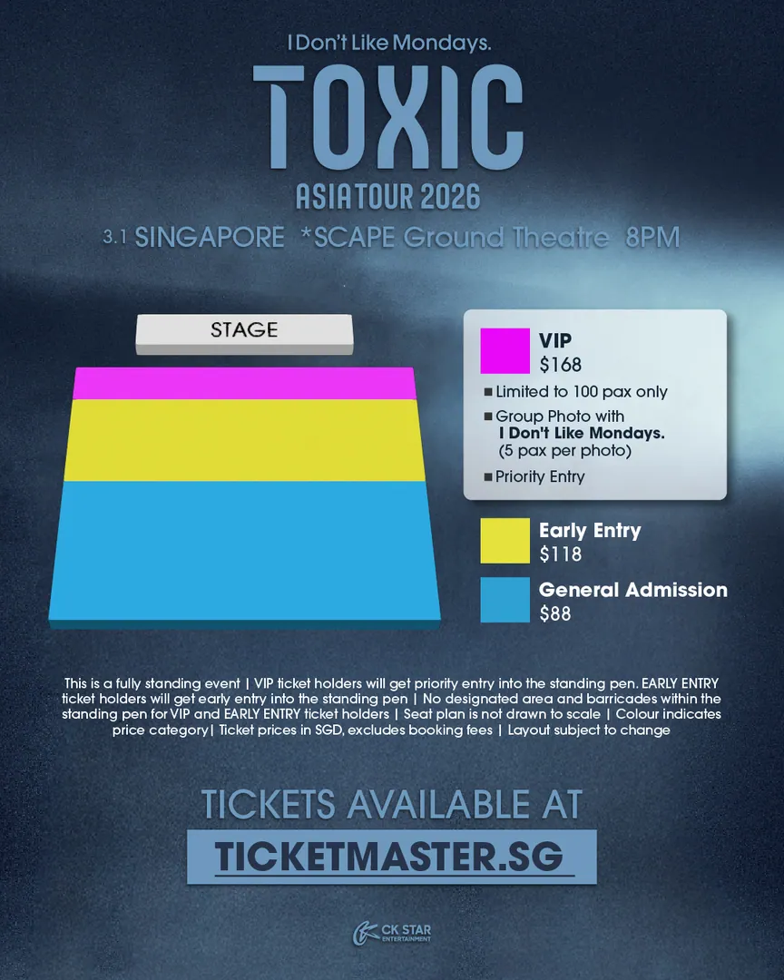 Presented by CK Star Entertainment, the band’s first-ever Singapore concert is happening on Sunday, 1 March, 8PM at *SCAPE Ground Theatre. The one-night-only show marks the only Southeast Asian stop of their TOXIC ASIA TOUR 2026.