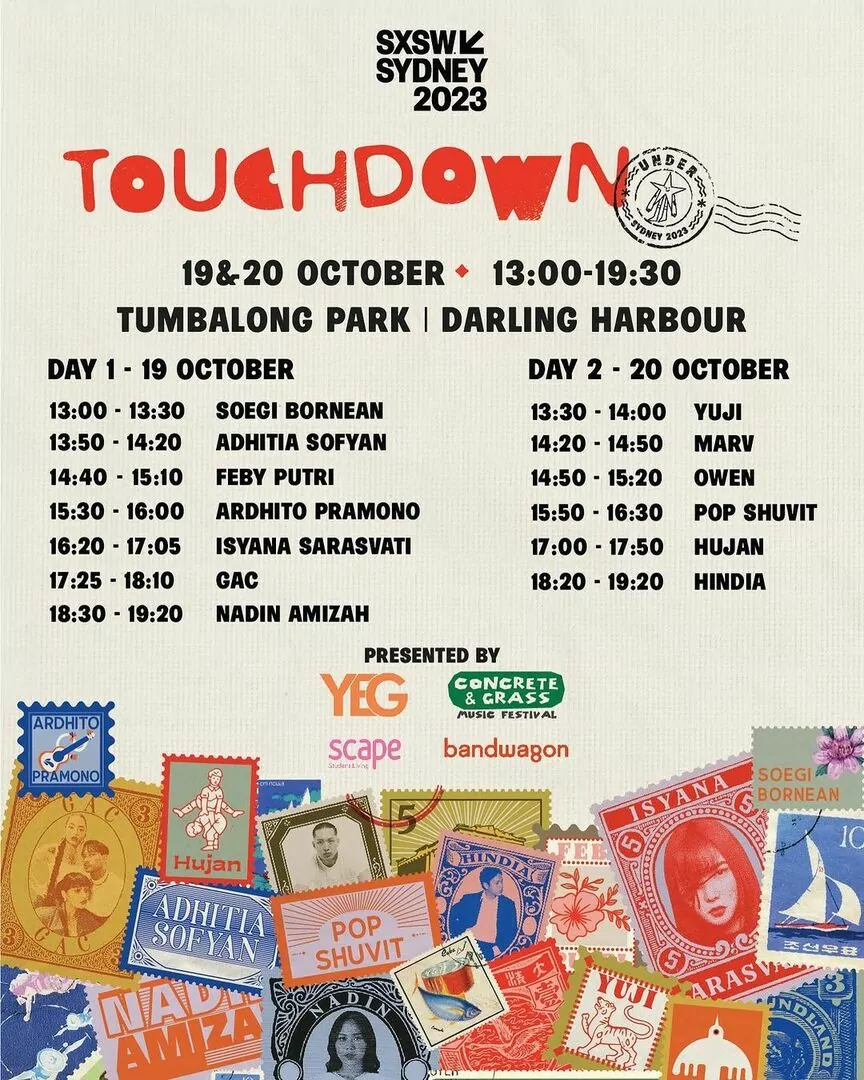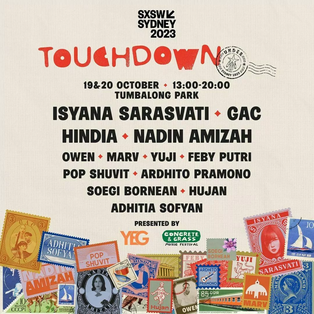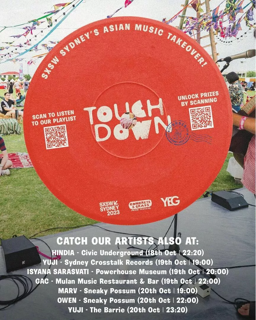 Pada tanggal 19 dan 20 Oktober, band asal China Concrete & Grass dan label asal Asia YEG Music akan menjadi host bersama pada Touchdown Under. Festival yang berlangsung selama 2 hari ini akan menampilkan penampilan dari penyanyi multi-instrumentalis peraih penghargaan asal Indonesia, Isyana Sarasvati, trio power-pop asal Jakarta, GAC, bintang indie-pop Indonesia, Hindia, dan penyanyi-penulis lagu Nadin Amizah. Selain itu, artis Malaysia seperti band indie rock Hujan, penyanyi R&B Yuji, dan grup rap-rock Pop Shuvit juga turut memeriahkan festival ini, bersama dengan artis K-hip-hop OWEN dan MARV.