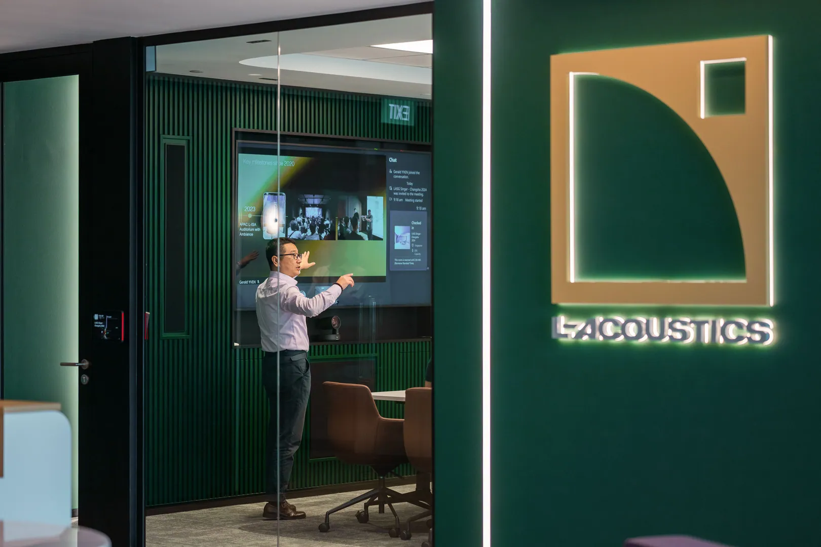The new 9,000-square-foot facility at Paya Lebar Green is a major step up from its early co-working days. Since setting up shop in 2019, L-Acoustics’ Singapore team has grown fast — now 28 strong, with 19 staff on-site and 9 remote team members regularly working out of the new space.