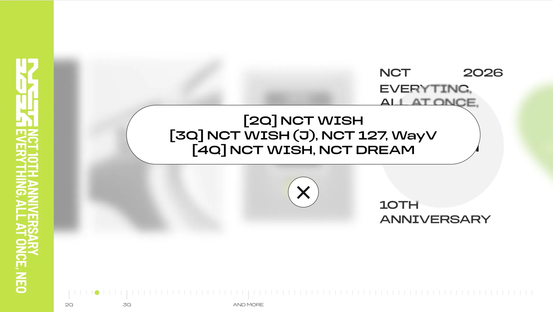As a play on the full form of NCT, "Neo Culture Technology", the theme for the anniversary projects will be "EVERYTHING, ALL AT ONCE, NEO". Each project tips a hat to their growth and evolution as artists, fueled by their iconic “NEO” energy with each new era on the horizon. Leading the charge, NCT revealed a new 10th anniversary logo has unveiled the brand new 10th Anniversary Logo that will take effect across their social media channels. Quickly following the gradual launch of exciting activations, was the official NCT 2026 promotional website which features an interactive roadmap that displays all the exciting projects set to be released in the coming year.