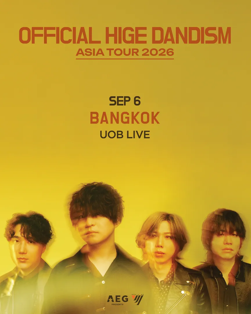Japanese pop-rock powerhouse OFFICIAL HIGE DANDISM are set to make their long-awaited return to Southeast Asia with OFFICIAL HIGE DANDISM ASIA TOUR 2026 in BANGKOK, happening on 6 September at UOB LIVE.