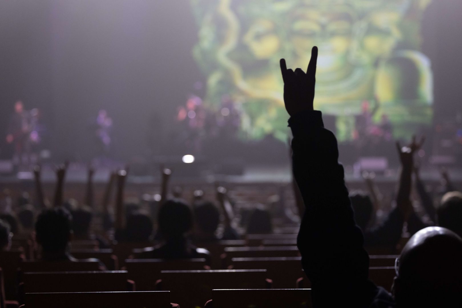 Fans of the band’s 2013 album RTA were certainly pleased with the setlist as they continued to play ‘Assault’ right after, and then, of course, one of their more popular numbers ‘Hymns from the Blazing Chariot’ off Brahmavidya: Transcendental I. One of my favourite bits from the concert was when Ragha, the flautist, chimed in with an impressive solo which not only rang crisp and clear but reverberated around the theatre. Towards the end, the classical percussionist Viknash also fluidly exchanged drum solos with drummer Shiva, and that in itself, proved Kathir’s points that "music transcends language," and as "one of the highest forms of expression, [that] is the reason why today we can bring these two extreme genres together."