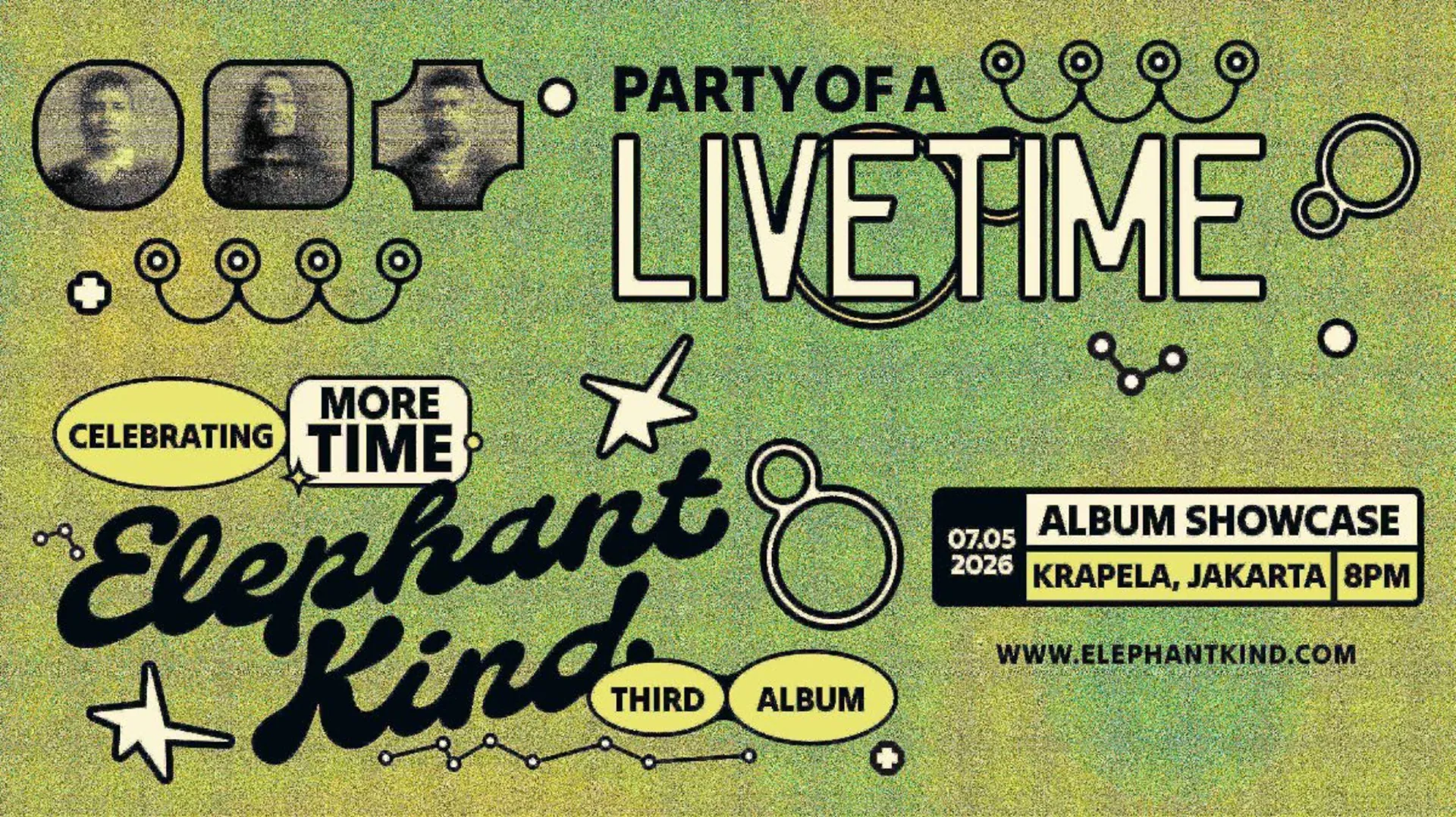 Untuk merayakan perilisan album ini, Elephant Kind meluncurkan Party of a LIVETIME. Peluncuran album dua bagian di Jakarta akan dimulai dengan bab pertama, yang digelar awal pekan ini, menampilkan pesta mendengarkan yang intim dengan set DJ semi-live, memberikan penggemar kesempatan mendengarkan eksklusif lebih awal. Bagian kedua, yang akan digelar pada bulan Mei, akan menjadi pertunjukan live penuh, membawakan album baru secara utuh beserta lagu-lagu unggulan dari katalog musik mereka. Klik di sini untuk informasi terbaru dan pemesanan tiket.