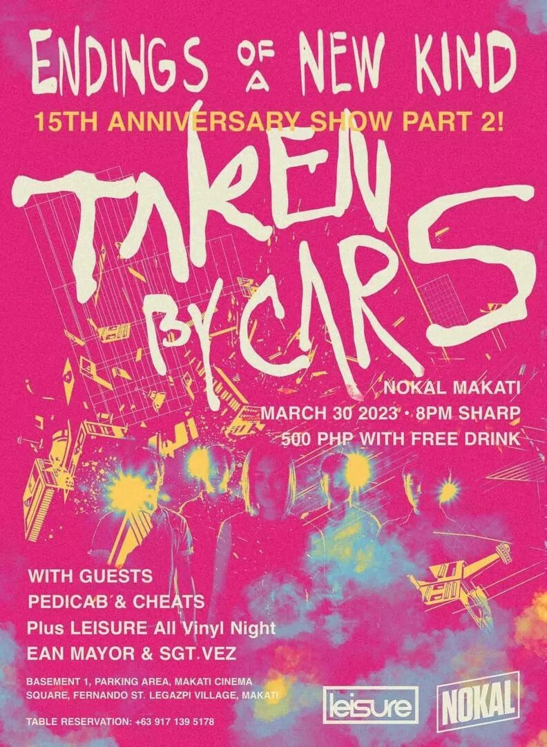 The 'Shapeshifter' act is continuing the 15th-anniversary celebration of their debut album, Endings Of A New Kind, at NoKal on 30 March 2023. Part 2 will feature the reunion of Taken By Cars' Sarah Marco (vocals), Bryce Zialcita (guitar), Derek Chua (guitar), Isa Garcia (bass), and Bryan Kong (drums), as well as performances by Cheats and Pedicab.