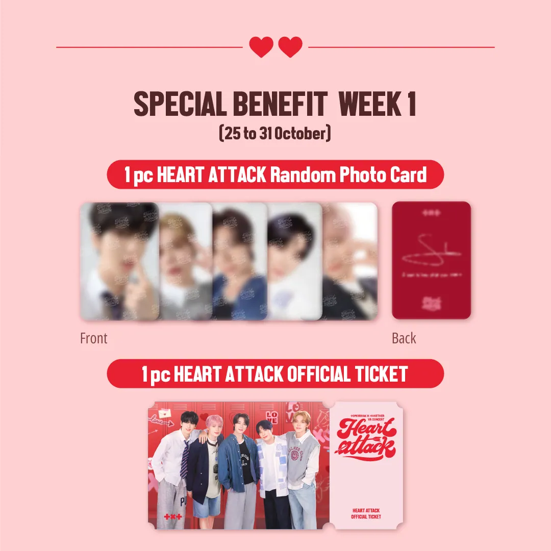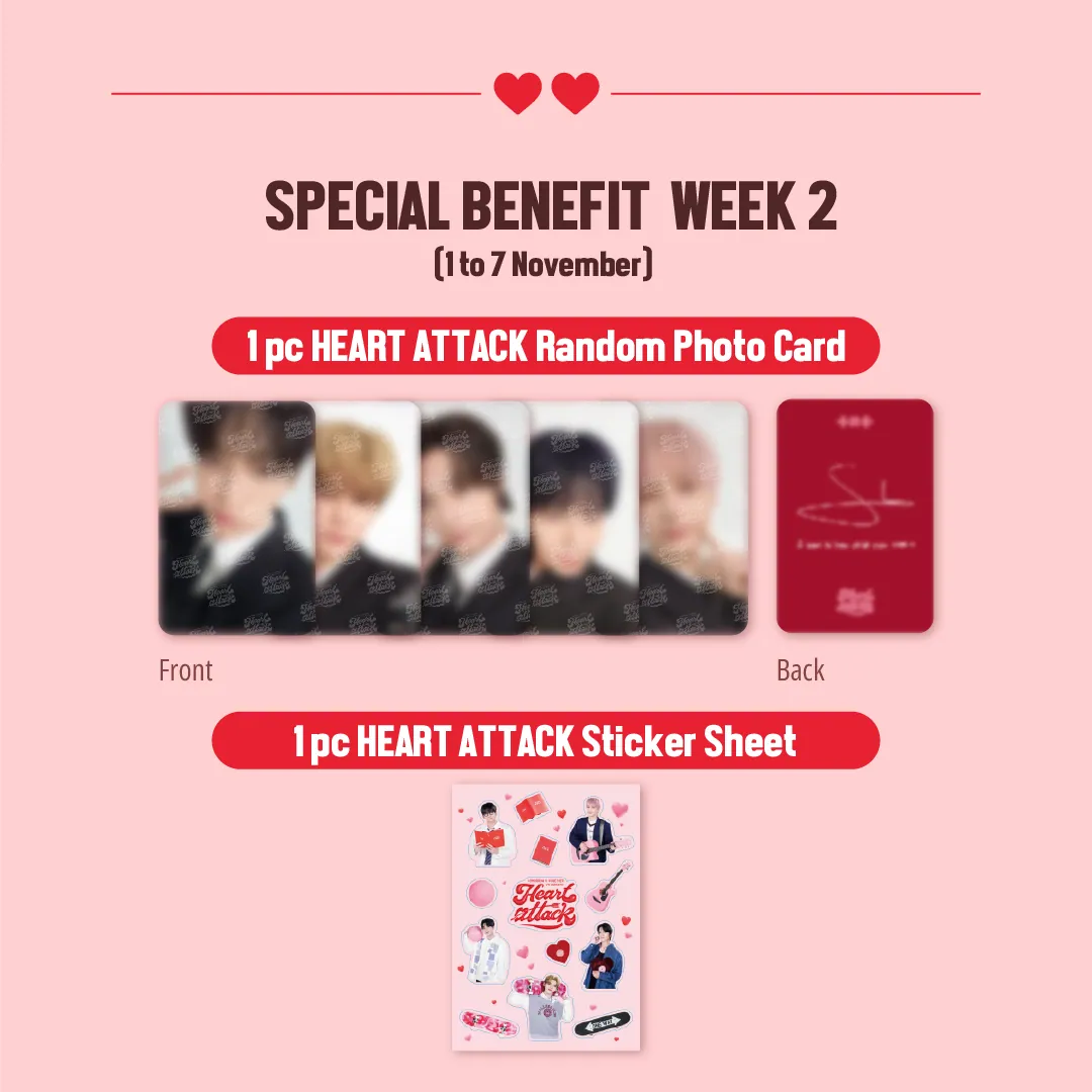 - 1 pc HEART ATTACK Random Photo Card (1 out of 5 designs)