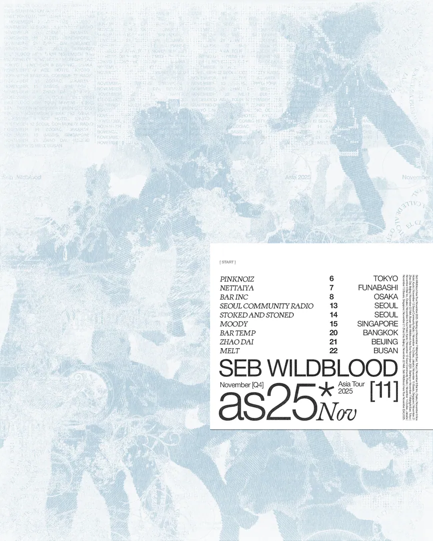 Seb Wildblood is heading back to Asia. The UK electronic producer and all my thoughts label head has announced his 2025 Asia Tour, with nine dates across Japan, Korea, Singapore, Thailand, and China. The tour kicks off 6 November in Tokyo and marks Wildblood’s biggest regional run to date — including stops in underground favourites like Zhao Dai (Beijing), Seoul Community Radio, and Bar Temp (Bangkok).