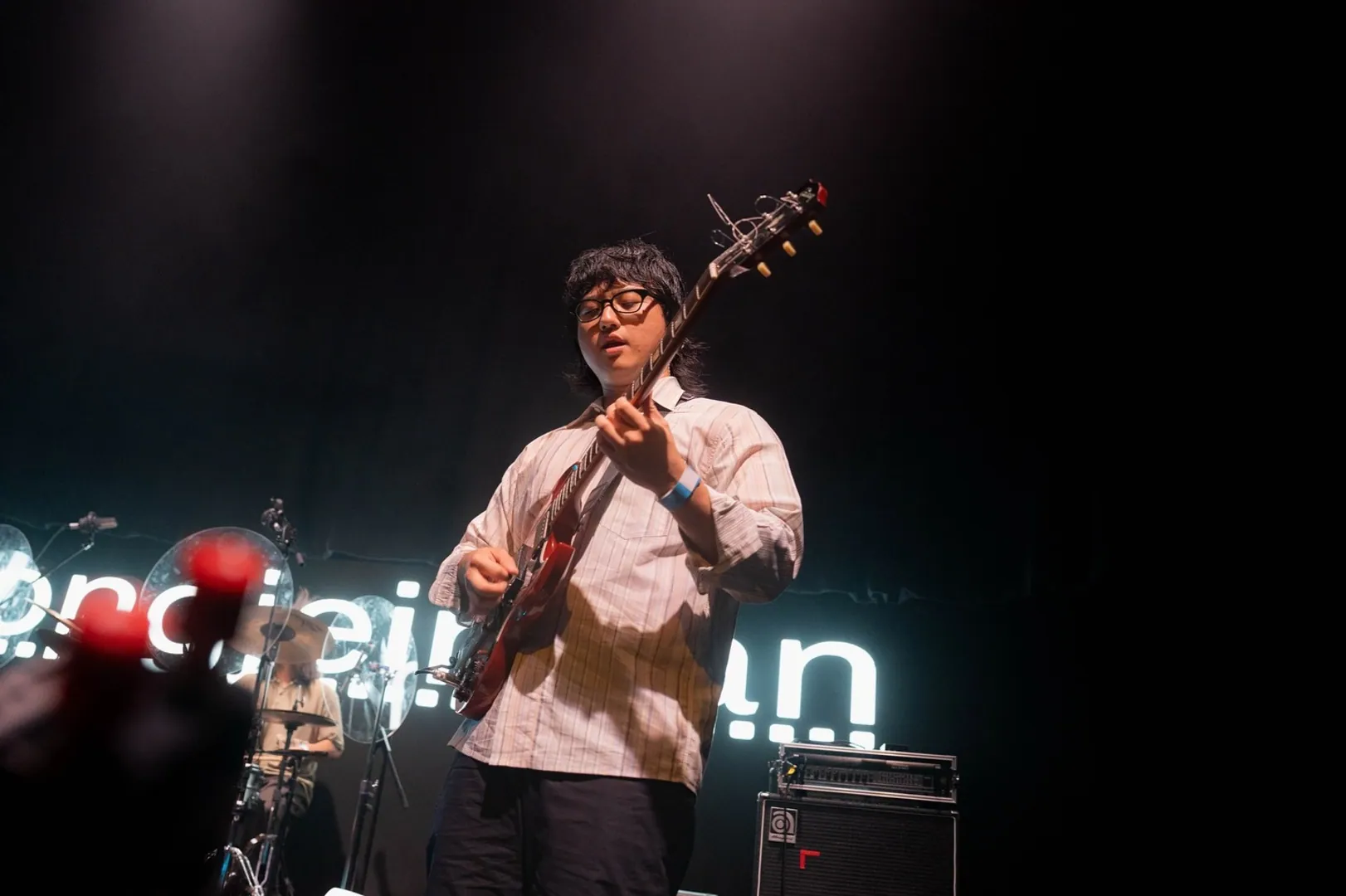 bongjeingan brought Seoul’s creative heartbeat to the festival. Made up of members from Hyukoh, Sultan of the Disco, and Kiha & The Faces, the trio channelled a raw honesty that blurred the lines between indie rock and math rock. Their set was luminous and loose, anchored in rhythm but unafraid to drift into wild crescendos. It felt like watching three musicians heal each other in real time — and inviting everyone else to join in.